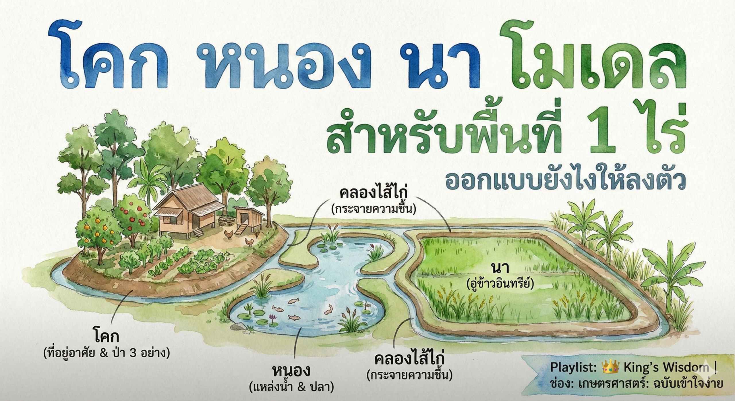 วันนี้ช่องเกษตรศาสตร์ฯ จะพามาดูแนวทางการออกแบบ “โคก หนอง นา ฉบับมินิ” บนพื้นที่ 1 ไร่ ให้ลงตัว สวยงาม และตอบโจทย์การพึ่งพาตนเองครับ