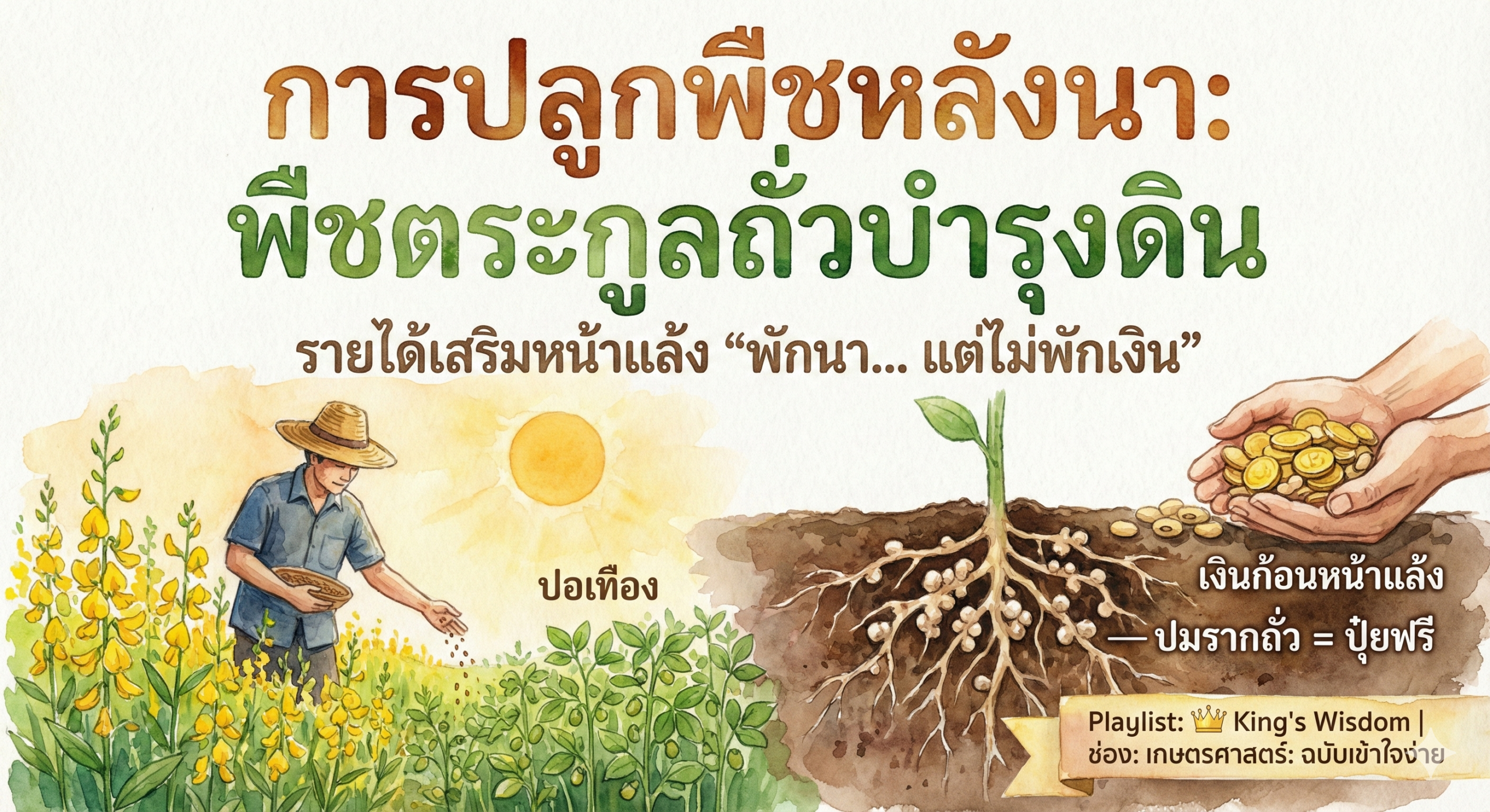 นี่คือบทความฉบับสมบูรณ์สำหรับหัวข้อ “การปลูกพืชหลังนา: พืชตระกูลถั่วบำรุงดิน” เน้นความเข้าใจง่าย เห็นภาพความคุ้มค่า และเชื่อมโยงกับการปรับปรุงบำรุงดินตามแนวทางศาสตร์พระราชาครับ