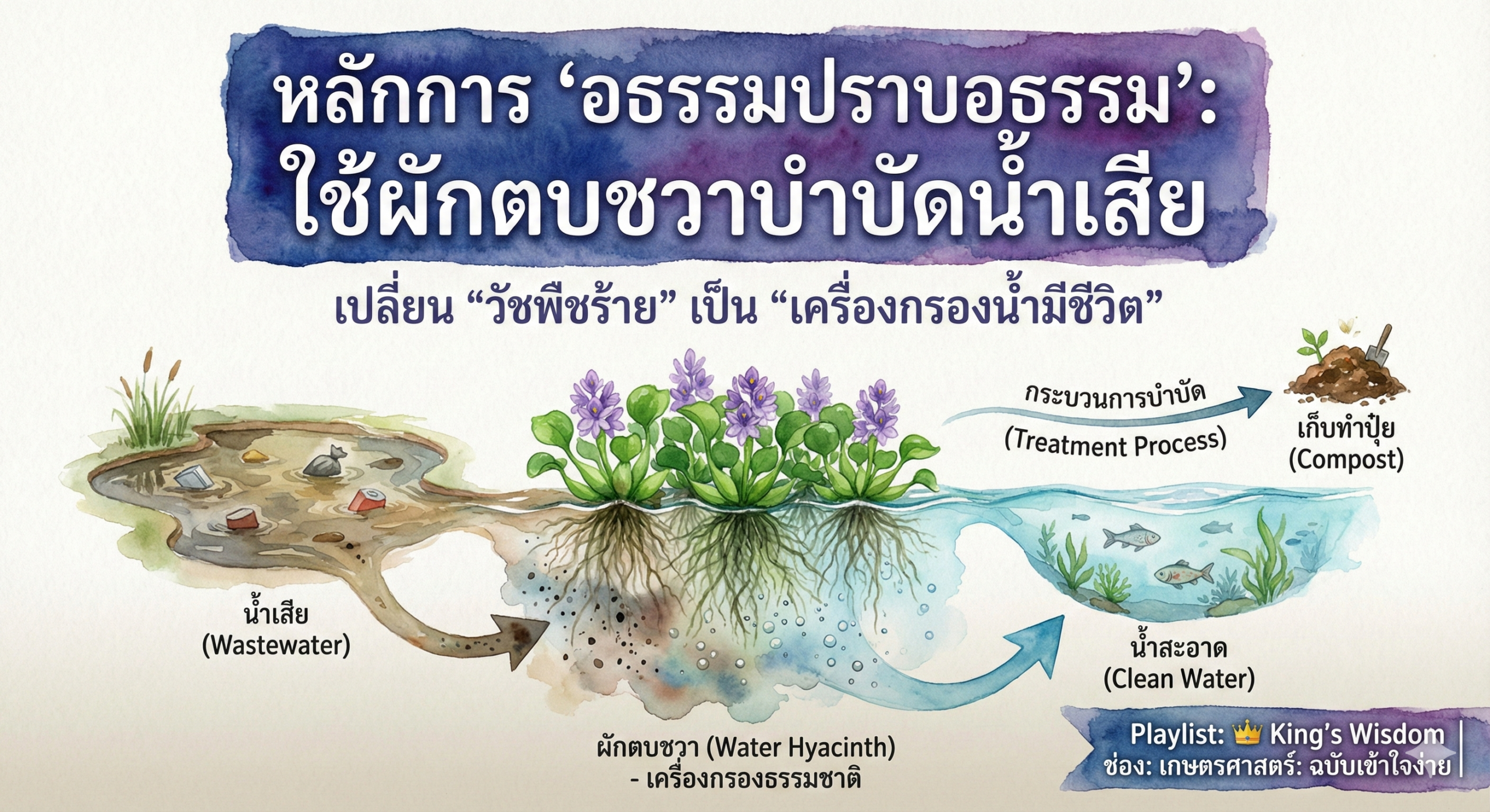 นี่จึงเป็นที่มาของทฤษฎี “อธรรมปราบอธรรม” หรือการใช้ผักตบชวามาบำบัดน้ำเสีย เปลี่ยนวัชพืชไร้ค่า ให้กลายเป็น “เครื่องกรองน้ำธรรมชาติ” ที่ประหยัดและยั่งยืนที่สุดครับ!