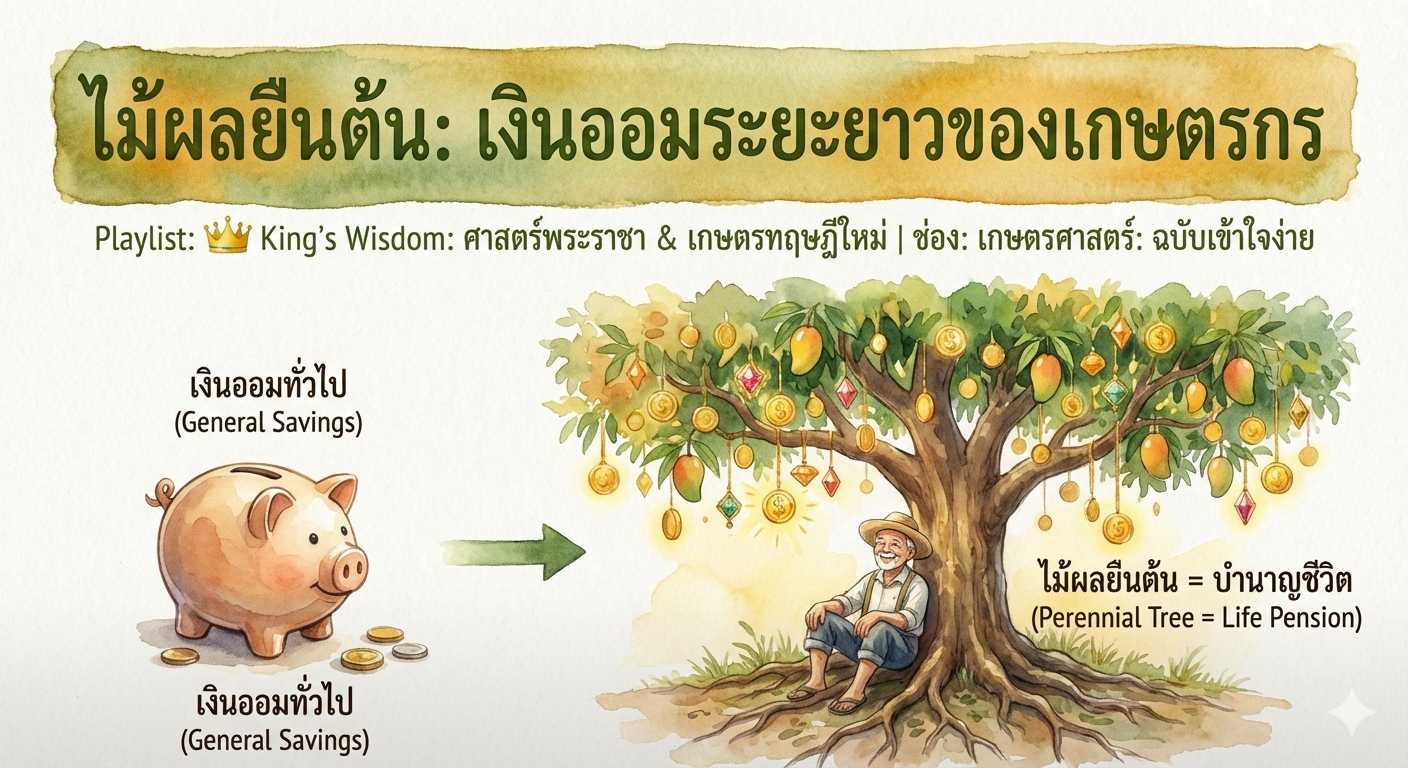 🌳 1. ทำไม “ไม้ผลยืนต้น” ถึงเป็นเงินออม?